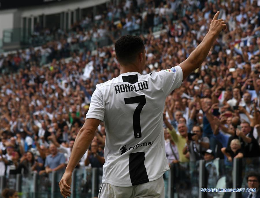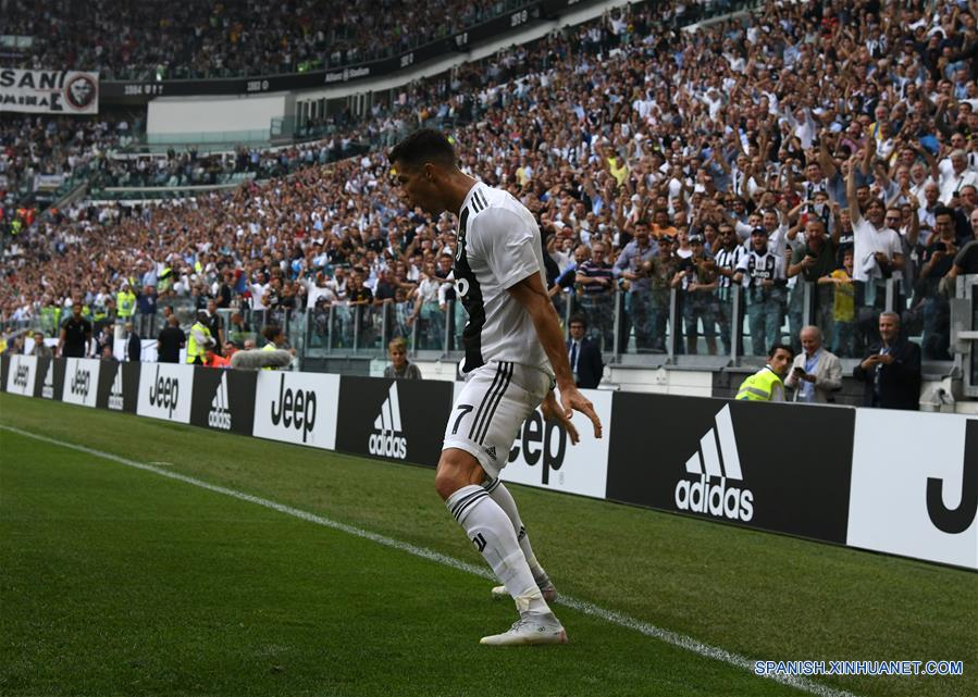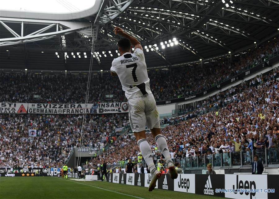 TURIN, septiembre 16, 2018 (Xinhua) -- El jugador Cristiano Ronaldo, de Juventus festeja su anotación durante el partido correspondiente a la Serie A italiana, ante Sassuolo, celebrado en el Estadio Juventus, en Turín, Italia, el 16 de septiembre de 2018. (Xinhua/Alberto Lingria)