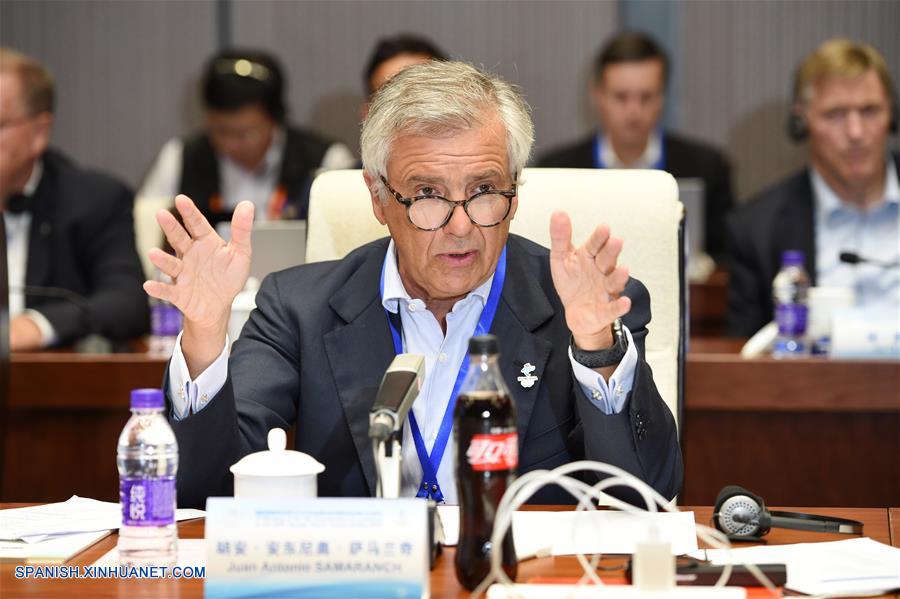 BEIJING, septiembre 17, 2018 (Xinhua) -- El vicepresidente del Comité Olímpico Internacional (COI), Juan Antonio Samaranch Salisachs, pronuncia un discurso durante la 3 reunión de la Comisión de Coordinación del COI para los XXIV Juegos Olímpicos de Invierno Beijing 2022, en Beijing, capital de China, el 17 de septiembre de 2018. (Xinhua/Ju Huanzong)