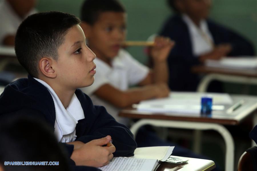 CARACAS, septiembre 17, 2018 (Xinhua) -- Un estudiante participa durante una clase, en el Colegio Experimental Venezuela, en Caracas, Venezuela, el 17 de septiembre de 2018. El presidente de Venezuela, Nicolás Maduro, saludó el lunes el comienzo del período escolar 2018-2019 que inician más de 7,6 millones de estudiantes, y deseó "el mayor de los éxitos" a los alumnos que regresan a clases luego de dos meses de vacaciones. (Xinhua/Ricardo Herdenez/AVN)