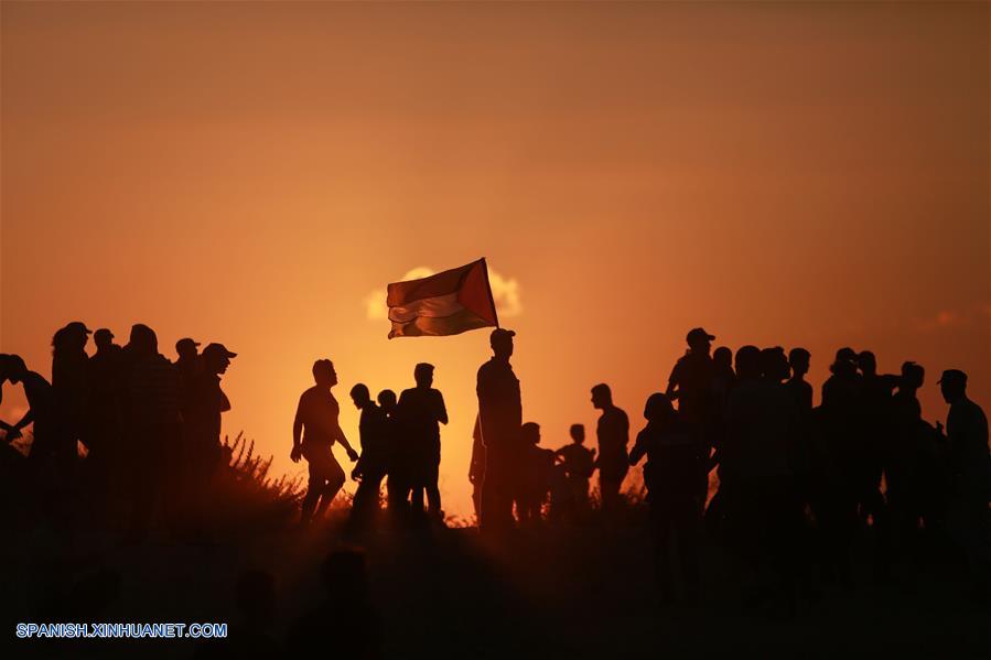 GAZA, septiembre 17, 2018 (Xinhua) -- Manifestantes palestinos participan durante un enfrentamiento con tropas israelíes cerca de la frontera entre la Franja de Gaza e Israel, el 17 de septiembre de 2018. Al menos 95 palestinos resultaron heridos el lunes en sus enfrentamientos con soldados israelíes en la frontera entre el norte de la Franja de Gaza e Israel, indicó el Ministerio de Salud de Gaza. (Xinhua/Str)