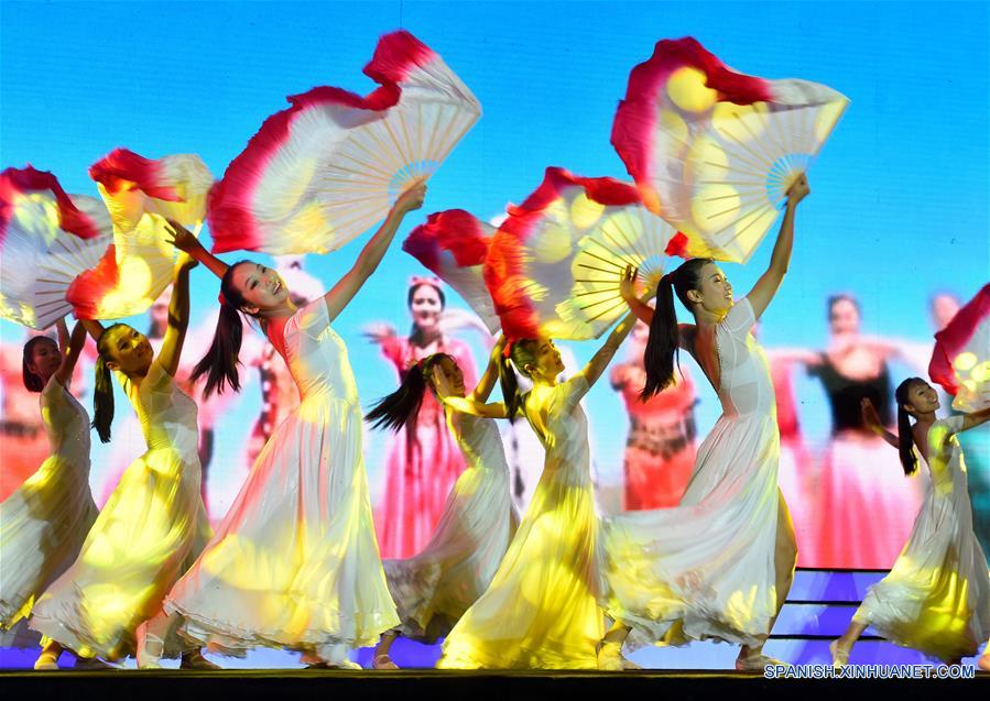 BEIJING, septiembre 18, 2018 (Xinhua) -- Imagen del 17 de septiembre de 2018 de bailarinas interpretando un baile durante una actividad de recitar poesía para saludar al próximo Festival de Medio Oto?o, en Beijing, capital de China. (Xinhua/Luo Xiaoguang)