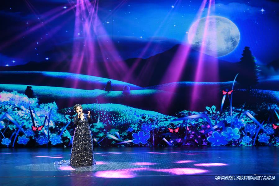 GANSU, septiembre 18, 2018 (Xinhua) -- Imagen del 17 de septiembre de 2018 de una cantante realizando una actuación durante una actividad llevada a cabo para saludar al próximo Festival de Medio Oto?o, en Lanzhou, provincia de Gansu, en el noroeste de China. (Xinhua/Fan Peishen)