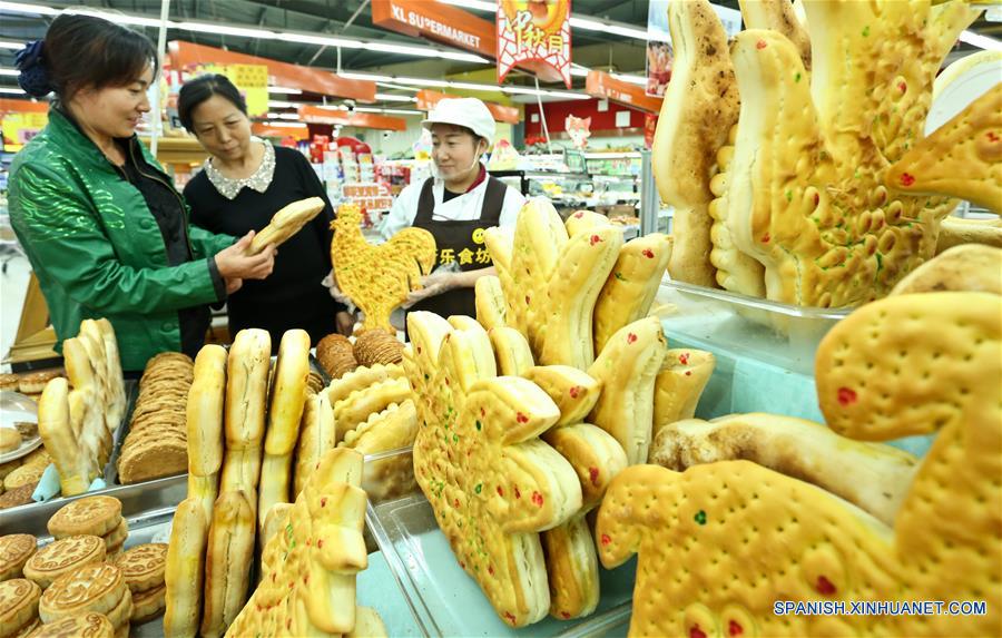 Ciudadanos compran pasteles de luna tradicionales en un supermercado de Zhangye, en la provincia de Gansu, en el noroeste de China, el 18 de septiembre de 2018. La elaboración de pasteles de luna previo al Festival de Medio Oto?o es una tradición de hace 1000 a?os en Zhangye. (Xinhua/Wang Jiang)