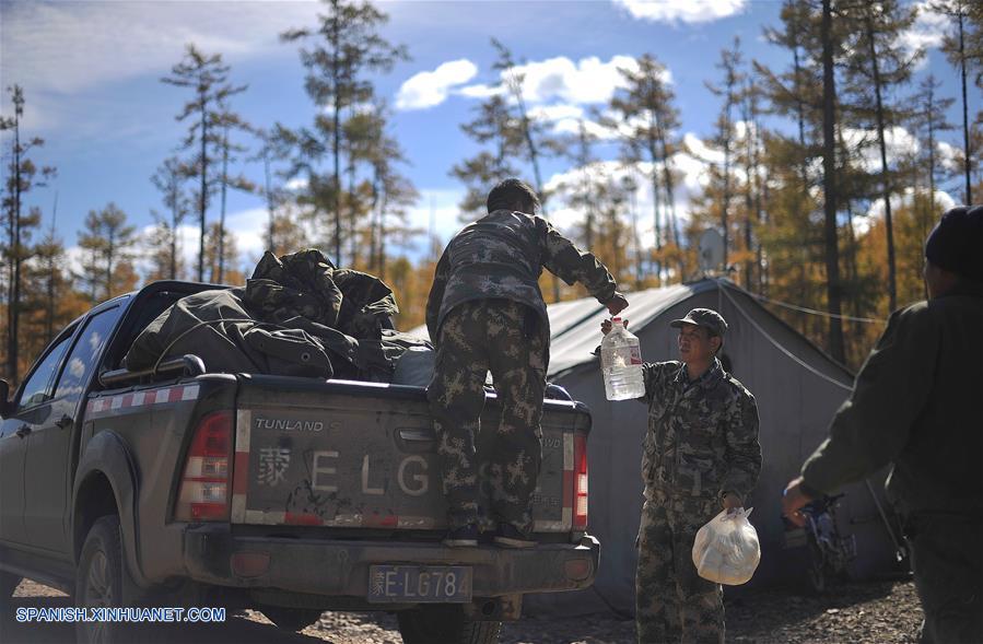 GENHE, septiembre 19, 2018 (Xinhua) -- Imagen del 18 de septiembre de 2018 de guardabosques transportando alimento y agua a la base de cría de renos en la Finca Forestal Yue'anli de la oficina forestal de Genhe en las monta?as Gran Khingan de la Región Autónoma de Mongolia Interior, en el norte de China. Los empleados de la Finca Forestal Yue'anli son responsables de la conservación y el trabajo de cría de renos en China. (Xinhua/Yu Yang)