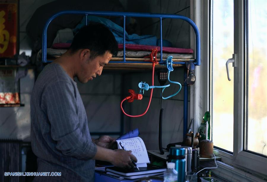 GENHE, septiembre 19, 2018 (Xinhua) -- Imagen del 18 de septiembre de 2018 del guardabosques Wang Liangcai manteniendo un registro de la alimentación de los renos en la Finca Forestal Yue'anli de la oficina forestal de Genhe en las monta?as Gran Khingan de la Región Autónoma de Mongolia Interior, en el norte de China. Los empleados de la Finca Forestal Yue'anli son responsables de la conservación y el trabajo de cría de renos en China. (Xinhua/Zou Yu)