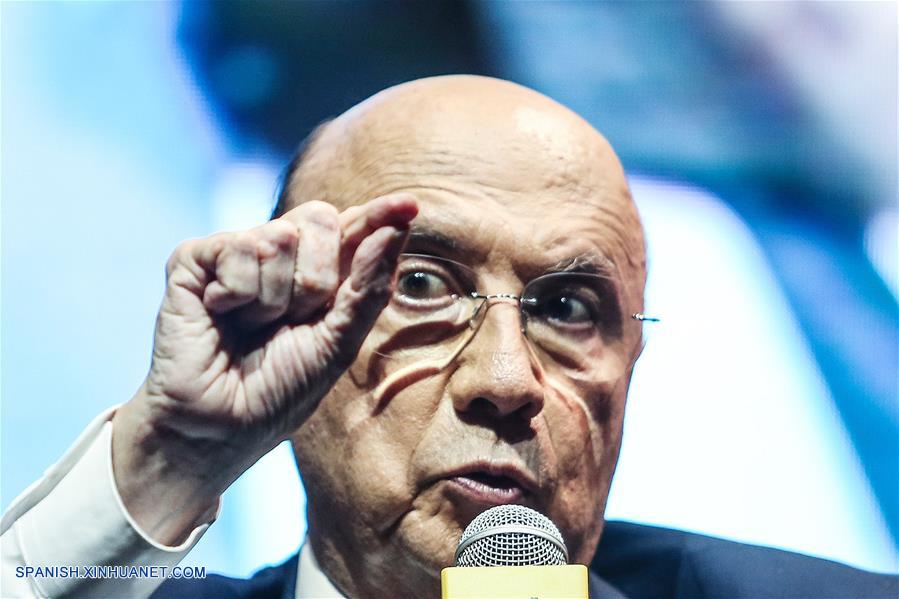 SAO PAULO, septiembre 19, 2018 (Xinhua) -- El candidato presidencial por el partido Movimiento Democrático de Brasil (MDB), Henrique Meirelles, asiste a un evento con candidatos presidenciales promovido por una revista semanal, en Sao Paulo, Brasil, el 19 de septiembre de 2018. Las elecciones presidenciales en Brasil se llevarán a cabo el 7 de octubre, de acuerdo con información de la prensa local. (Xinhua/Rahel Patrasso)