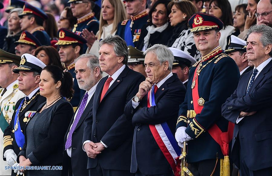 SANTIAGO, septiembre 19, 2018 (Xinhua) -- El presidente chileno, Sebastián Pi?era (3-d), participa durante la Gran Parada Militar en conmemoración del Día de las Glorias del Ejército, en el Parque O'Higgins, en Santiago, capital de Chile, el 19 de septiembre de 2018. El presidente de Chile, Sebastián Pi?era, presidió el miércoles la tradicional Parada Militar en la que unos 9,000 efectivos de todas las unidades castrenses marcharon para conmemorar el Día de las Glorias del Ejército chileno, que en este 2018 destacó por el protagonismo de las mujeres uniformadas. (Xinhua/Jorge Villegas)