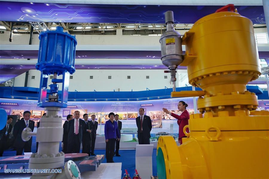 Personas visitan la exhibición que marca los logros hechos en la Región Autónoma Hui de Ningxia en los 60 a?os desde su fundación, en Yinhcuan, capital de la Región Autónoma Hui de Ningxia, en el noroeste de China, el 19 de septiembre de 2018. (Xinhua/Xing Guangli)