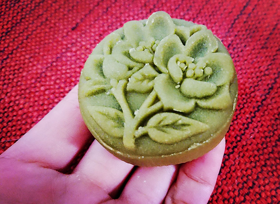 Para esta Fiesta, Jingjing creó una variedad de pasteles de luna con relleno semilíquido de sabores como el té verde, la flor de osmantos, el durian, el chocolate amargo, y el popular de yema con crema.