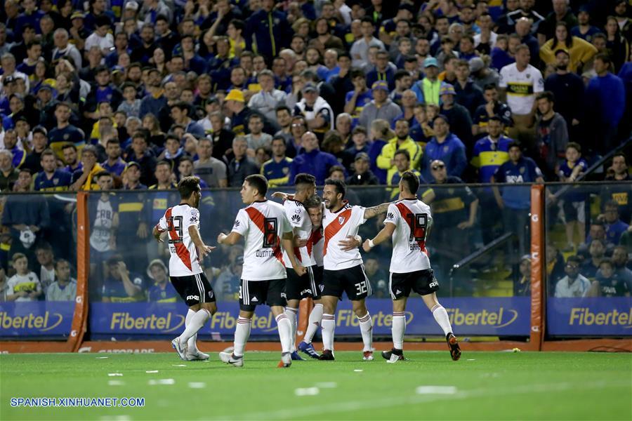 BUENOS AIRES, 23 sep (Xinhua) -- El club de fútbol River Plate derrotó hoy domingo 2-0 como visitante al Boca Juniors en el llamado súper clásico del fútbol argentino, correspondiente a la sexta fecha de la Superliga.