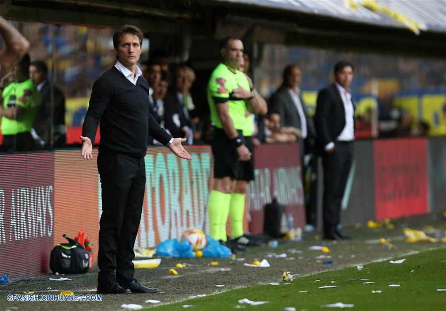 BUENOS AIRES, septiembre 23, 2018 (Xinhua) -- El director técnico Guillermo Barros Schelotto, de Boca Juniors, reacciona durante el partido correspondiente a la fecha 6 de la Superliga argentina, ante River Plate, celebrado en el estadio Diego J. Armando, conocido como "La Bombonera", en la ciudad de Buenos Aires, capital de Argentina, el 23 de septiembre de 2018. (Xinhua/Martín Zabala)