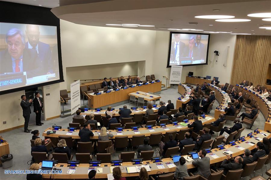 NUEVA YORK, septiembre 23, 2018 (Xinhua) -- Un foro para lanzar el Mecanismo de Acción contra la Hambruna se lleva a cabo en la sede de la Organización de las Naciones Unidas (ONU), en Nueva York, Estados Unidos, el 23 de septiembre de 2018. El secretario general de la ONU, António Guterres, elogió el domingo el Mecanismo de Acción contra la Hambruna del Banco Mundial y la ONU como una importante herramienta nueva para prever y evitar la hambruna. (Xinhua/Li Muzi)