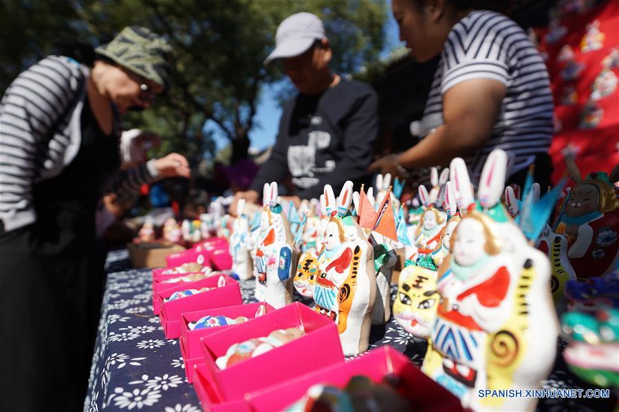 BEIJING, septiembre 24, 2018 (Xinhua) -- Ciudadanos y turistas observan conejos de arcilla en el Museo de Tradiciones Folclóricas de Beijing, en Beijing, capital de China, el 24 de septiembre de 2018. Una serie de actividades culturales se llevaron a cabo en el museo para celebrar el Festival de Medio Oto?o, que este a?o cae el 24 de septiembre. (Xinhua/Ju Huanzong)