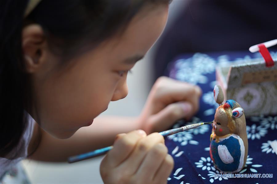 BEIJING, septiembre 24, 2018 (Xinhua) -- Una ni?a pinta un conejo de arcilla en el Museo de Tradiciones Folclóricas de Beijing, en Beijing, capital de China, el 24 de septiembre de 2018. Una serie de actividades culturales se llevaron a cabo en el museo para celebrar el Festival de Medio Oto?o, que este a?o cae el 24 de septiembre. (Xinhua/Ju Huanzong)