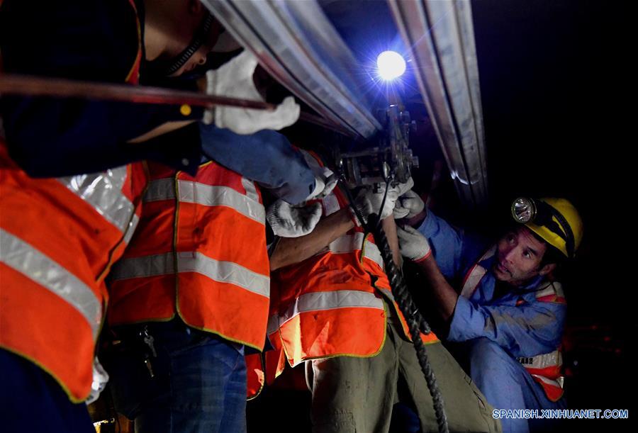 Obreros trabajan en el sitio de construcción de la línea 5 del metro, en Zhengzhou, capital de la provincia de Henan, en el centro de China, el 24 de septiembre de 2018. Obreros de la compa?ía China Railway Electrification Engineering Group continuaron con sus trabajos durante el Festival de Medio Oto?o, el quinceavo día del octavo mes del calendario lunar chino, que se celebra con reuniones familiares. (Xinhua/Li An)