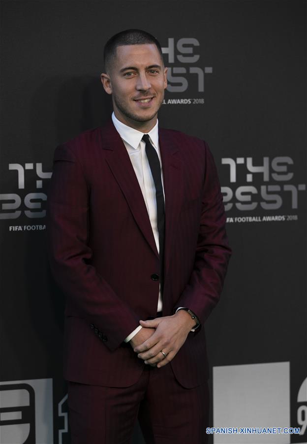 El jugador Eden Hazard, de Chelsea, llega a la alfombra verde previo a los Premios "The Best FIFA 2018" en Londres, Reino Unido, el 24 de septiembre de 2018. (Xinhua/Han Yan)
