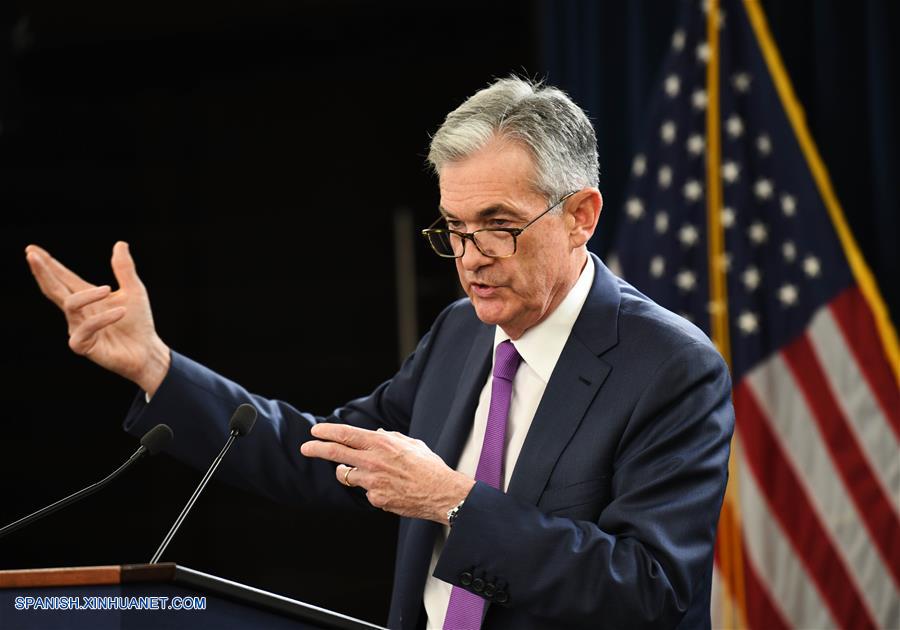 WASHINGTON D.C., septiembre 26, 2018 (Xinhua) -- El presidente de la Reserva Federal de Estados Unidos (Fed), Jerome Powell, participa durante una conferencia de prensa en Washington D.C., Estados Unidos, el 26 de septiembre de 2018. La Fed elevó el miércoles las tasas de interés a corto plazo en 0.25 por ciento, la tercera alza de este a?o y la octava desde finales de 2015. (Xinhua/Liu Jie)
