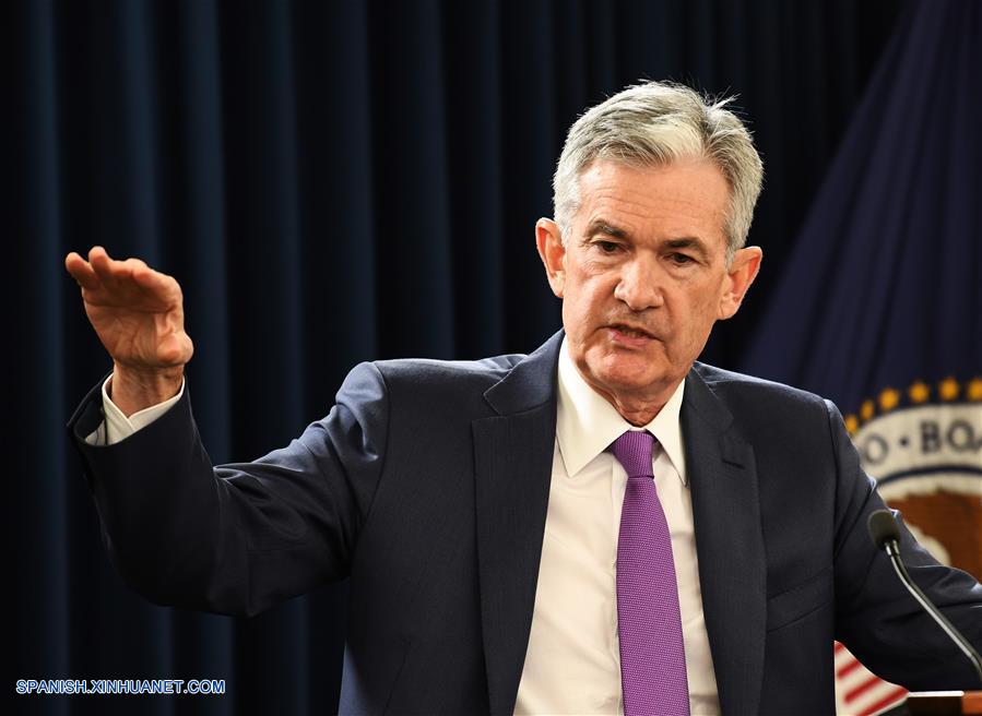WASHINGTON D.C., septiembre 26, 2018 (Xinhua) -- El presidente de la Reserva Federal de Estados Unidos (Fed), Jerome Powell, participa durante una conferencia de prensa en Washington D.C., Estados Unidos, el 26 de septiembre de 2018. La Fed elevó el miércoles las tasas de interés a corto plazo en 0.25 por ciento, la tercera alza de este a?o y la octava desde finales de 2015. (Xinhua/Liu Jie)