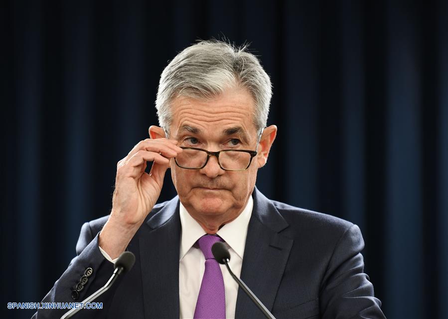 WASHINGTON D.C., septiembre 26, 2018 (Xinhua) -- El presidente de la Reserva Federal de Estados Unidos (Fed), Jerome Powell, participa durante una conferencia de prensa en Washington D.C., Estados Unidos, el 26 de septiembre de 2018. La Fed elevó el miércoles las tasas de interés a corto plazo en 0.25 por ciento, la tercera alza de este a?o y la octava desde finales de 2015. (Xinhua/Liu Jie)