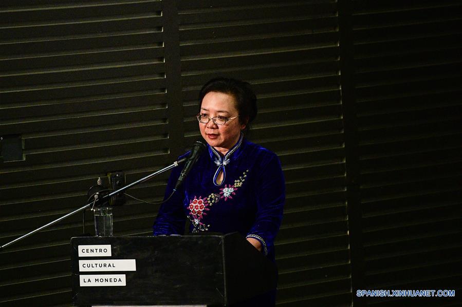 SANTIAGO, septiembre 26, 2018 (Xinhua) -- Imagen del 25 de septiembre de 2018 de la directora de la Corporación de Importación y Exportación de Películas de la Corporación del Grupo de Cine de China (CGCC), Xiao Ping, pronunciando un discurso durante la ceremonia inaugural de la Muestra de Cine Chino en América Latina, en la Cineteca Nacional de Chile, en Santiago, capital de Chile. La Muestra de Cine Chino en América Latina se inauguró el martes por la noche en Santiago de Chile, y exhibirá hasta el domingo próximo seis filmes contemporáneos de China. Los organizadores son la CGCC, el mayor estudio de producción y distribución de películas del país asiático, la Embajada de China en Chile y la Cineteca Nacional de Chile. (Xinhua/Jorge Villegas)