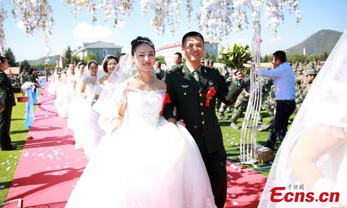 Soldados del Ejército Popular de Liberación celebran boda colectiva