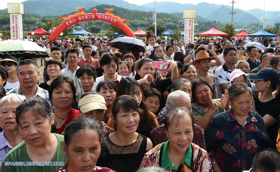 FUJIAN, septiembre 28, 2018 (Xinhua) -- Residentes observan el concurso de cocina durante un evento llevado a cabo celebrando la cosecha, en el municipio de Wutun de Wuyishan, provincia de Fujian, en el sureste de China, el 28 de septiembre de 2018. (Xinhua/Zhang Guojun)