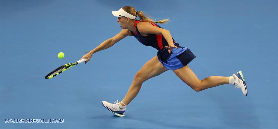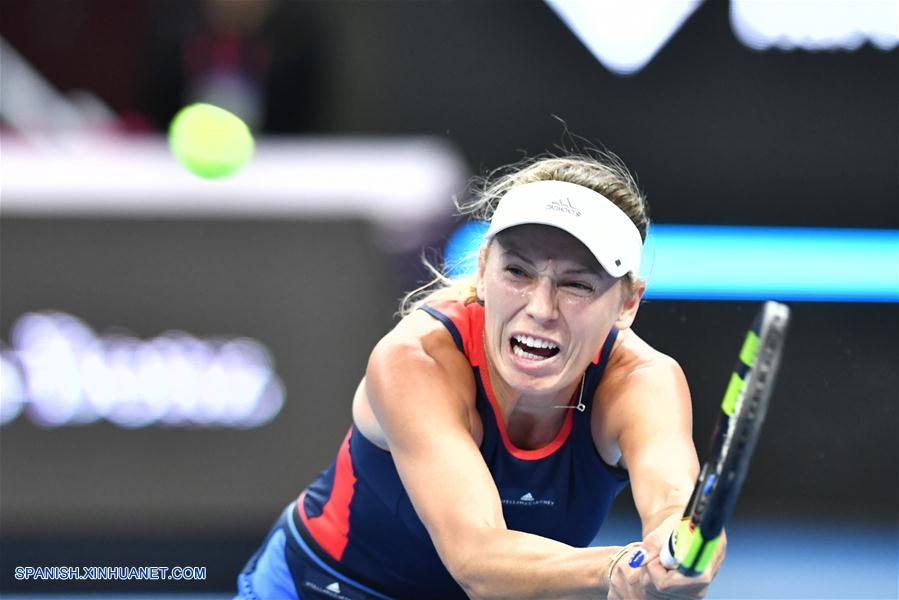 BEIJING, octubre 6, 2018 (Xinhua) -- Caroline Wozniacki, de Dinamarca, devuelve la pelota a Wang Qiang, de China, durante un partido individual femenil de semifinal del torneo de tenis Abierto de China, celebrado en Beijing, capital de China, el 6 de octubre de 2018. Caroline Wozniacki ganó el encuentro. (Xinhua/Liu Jinhai)