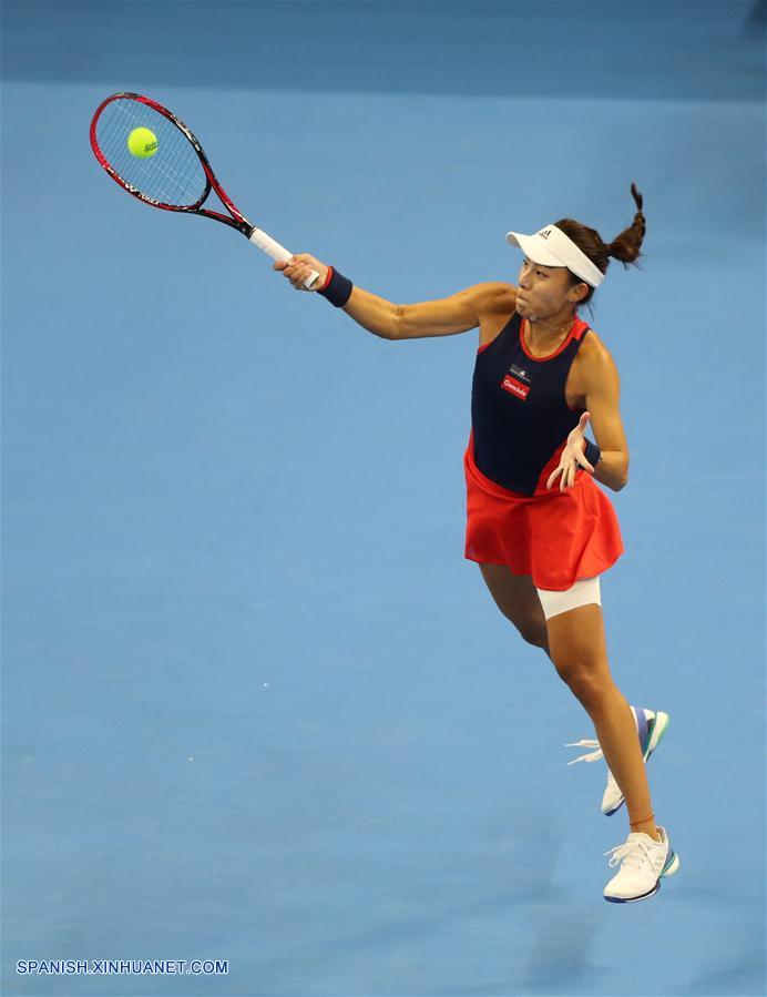 BEIJING, octubre 6, 2018 (Xinhua) -- Wang Qiang, de China, devuelve la pelota a Caroline Wozniacki, de Dinamarca, durante un partido individual femenil de semifinal del torneo de tenis Abierto de China, celebrado en Beijing, capital de China, el 6 de octubre de 2018. Wang Qiang perdió el encuentro. (Xinhua/Luo Yuan)