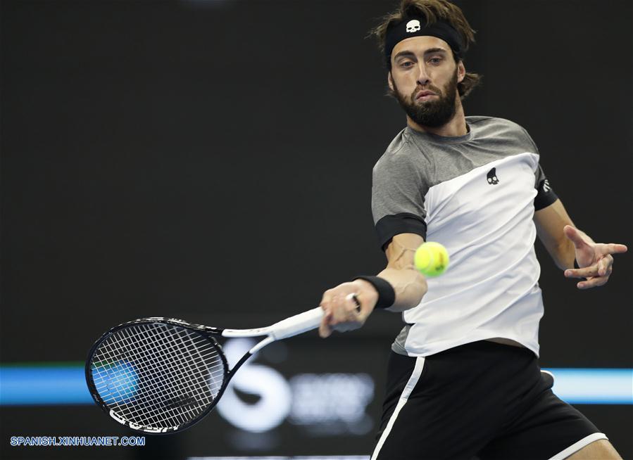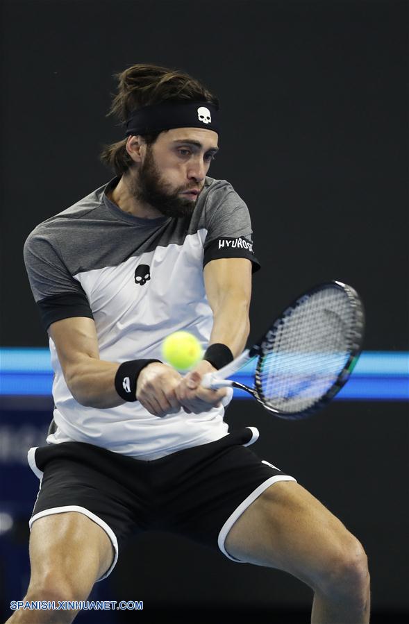 BEIJING, octubre 6, 2018 (Xinhua) -- Nikoloz Basilashvili, de Georgia, devuelve la pelota a Kyle Edmund, de Reino Unido, durante un partido individual varonil de semifinal del torneo de tenis Abierto de China, celebrado en Beijing, capital de China, el 6 de octubre de 2018. Nikoloz Basilashvili ganó el encuentro. (Xinhua/Jia Haocheng)