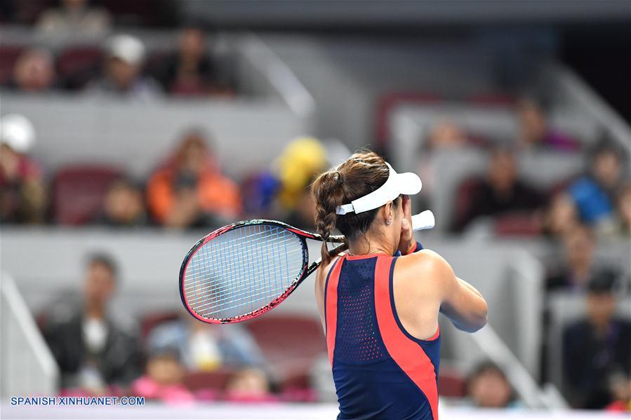 BEIJING, octubre 6, 2018 (Xinhua) -- Wang Qiang, de China, reacciona durante un partido individual femenil de semifinal del torneo de tenis Abierto de China, ante Caroline Wozniacki, de Dinamarca, celebrado en Beijing, capital de China, el 6 de octubre de 2018. Wang Qiang perdió el encuentro. (Xinhua/Liu Jinhai)