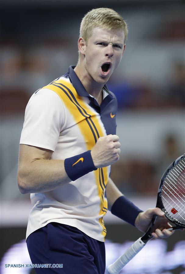 BEIJING, octubre 6, 2018 (Xinhua) -- Kyle Edmund, de Reino Unido, festeja durante un partido individual varonil de semifinal del torneo de tenis Abierto de China, ante Nikoloz Basilashvili, de Georgia, celebrado en Beijing, capital de China, el 6 de octubre de 2018. Kyle Edmund perdió el encuentro. (Xinhua/Jia Haocheng)