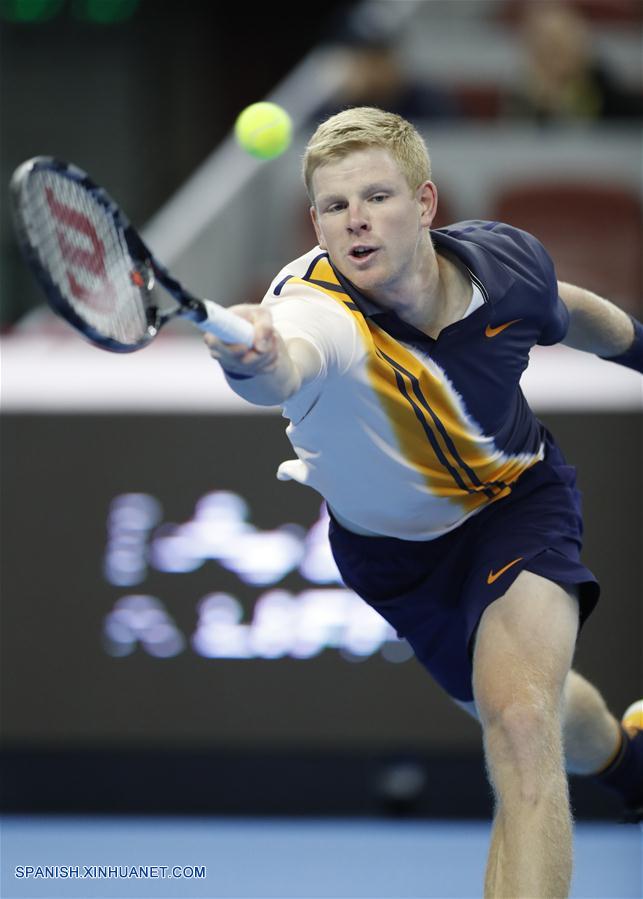 BEIJING, octubre 6, 2018 (Xinhua) -- Kyle Edmund, de Reino Unido, devuelve la pelota a Nikoloz Basilashvili, de Georgia, durante un partido individual varonil de semifinal del torneo de tenis Abierto de China, celebrado en Beijing, capital de China, el 6 de octubre de 2018. Kyle Edmund perdió el encuentro. (Xinhua/Jia Haocheng)