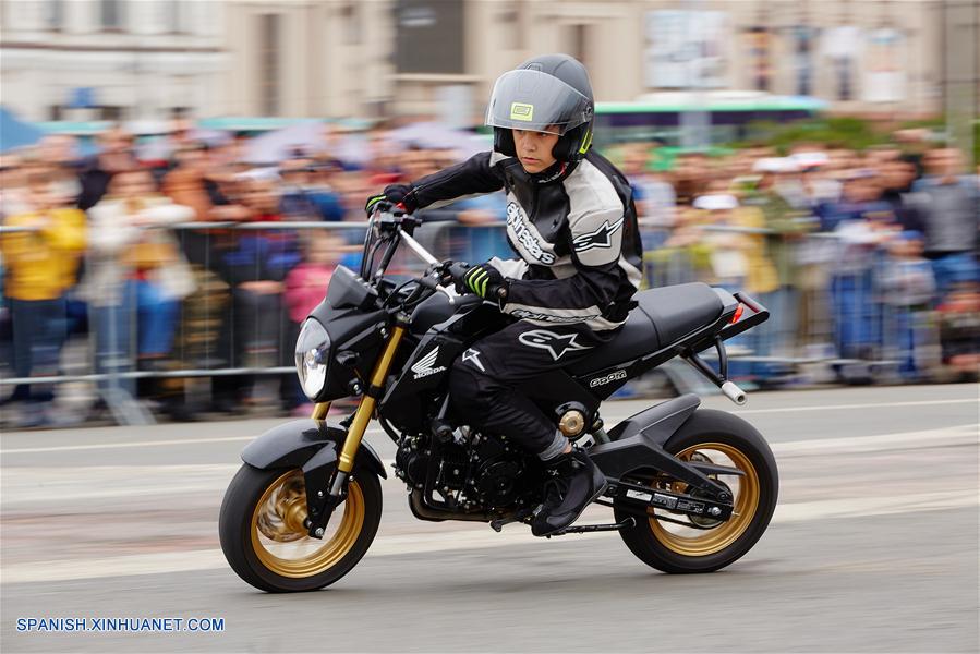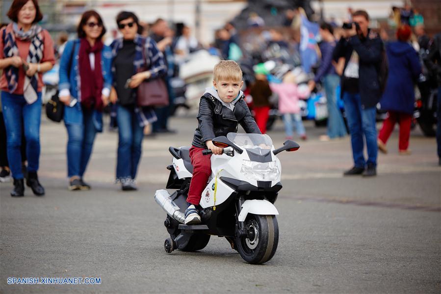 VLADIVOSTOK, octubre 6, 2018 (Xinhua) -- Un joven piloto asiste a un rally de motocicletas llevado a cabo en Vladivostok, Rusia, el 6 de octubre de 2018. (Xinhua/Wu Gang)