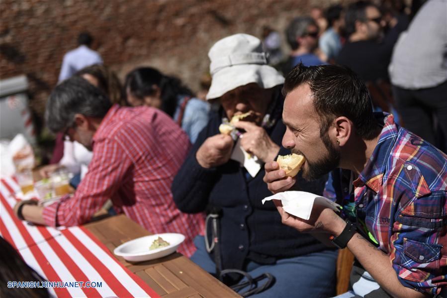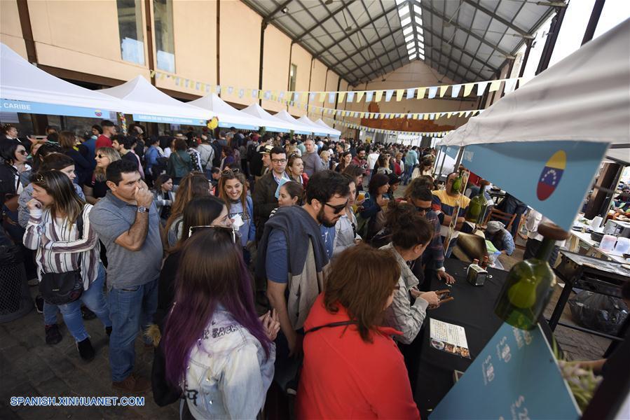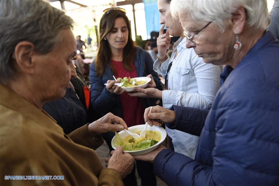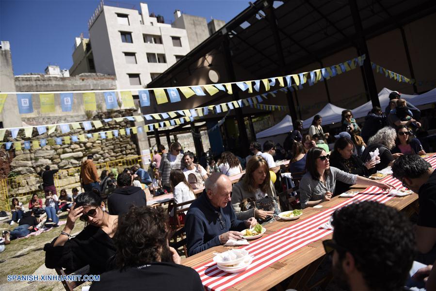 MONTEVIDEO, octubre 6, 2018 (Xinhua) -- Visitantes permanecen en fila para probar comida típica de otros países durante la feria gastronómica "Ciudad vieja sin fronteras", en el marco del 24 Día del Patrimonio y 70 aniversario de la Declaración Universal de Derechos Humanos, llevada a cabo en el Museo de las Migraciones (MUMI), en Montevideo, capital de Uruguay, el 6 de octubre de 2018. De acuerdo con información de la prensa local, la feria gastronómica "Ciudad vieja sin fronteras", organizada por la Secretaría de Equidad Etnico Racial y Poblaciones Migrantes (SEERPM) de la Intendencia de Montevideo, se realiza como parte de la campa?a "El mundo en tu ciudad", que desarrolla actividades durante todo octubre con el objetivo de visibilizar la situación migrante en Montevideo. (Xinhua/Nicolás Celaya)