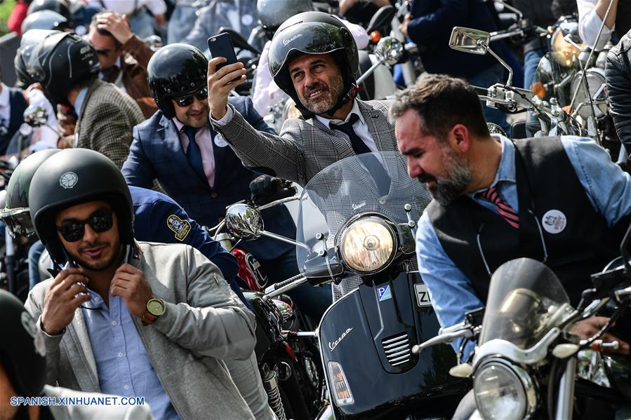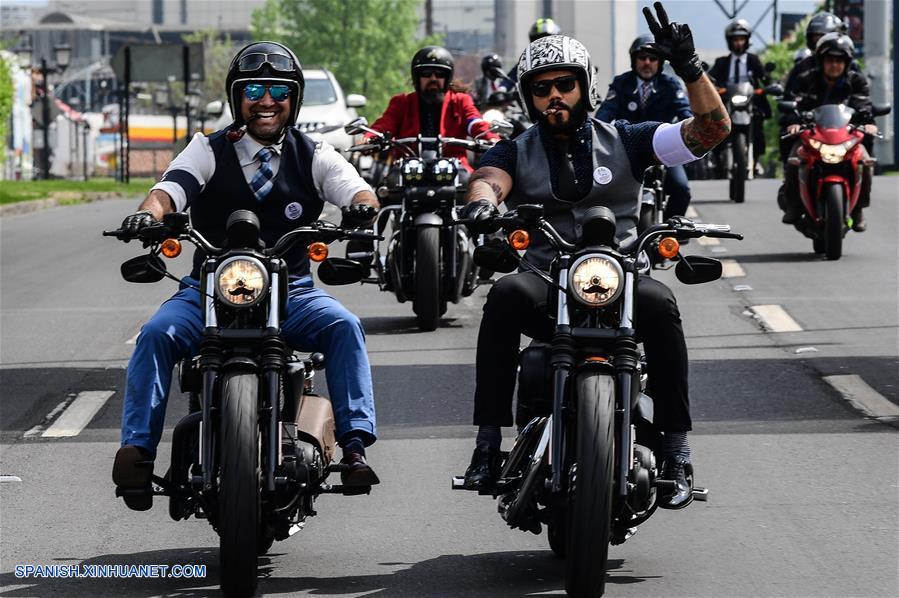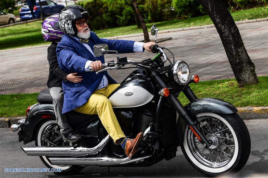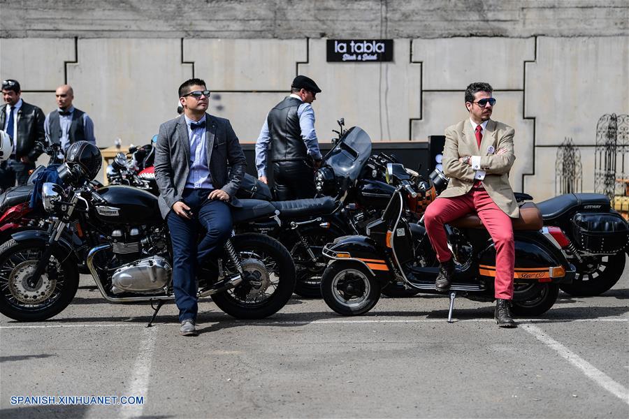 SANTIAGO, octubre 7, 2018 (Xinhua) -- Motociclistas participan durante el evento "Distinguished Gentleman's Ride Chile", en la ciudad de Santiago, capital de Chile, el 7 de octubre de 2018. De acuerdo con información de la prensa local, motociclistas recorrieron distintas zonas de la ciudad de Santiago durante el paseo que tiene como objetivo recaudar fondos para la prevención y estudio del cáncer de próstata. (Xinhua/Jorge Villegas)
