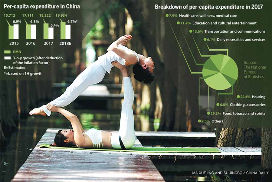 Dos cifras ilustran bien la evolución de la mejora del consumo: el gasto de consumo per cápita de China alcanzó los 18.322 renminbi (2.667 dólares) en 2017, un aumento del 5,4 por ciento interanual.