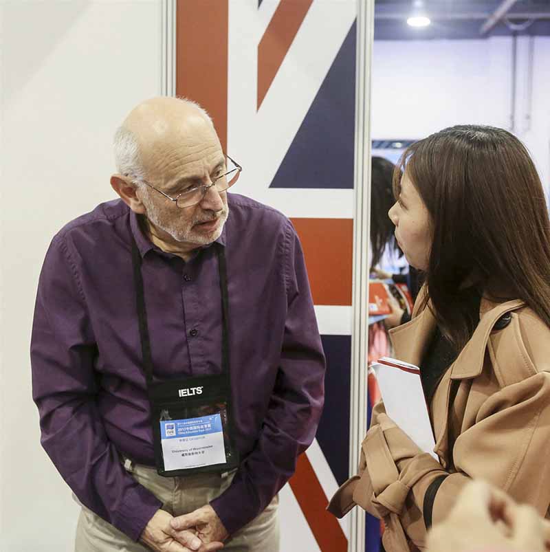 Una joven china consulta a un miembro del personal de la Universidad de Westminster durante una exposición internacional de educación, Beijing, 2017. (Foto: A Qing/China Daily)