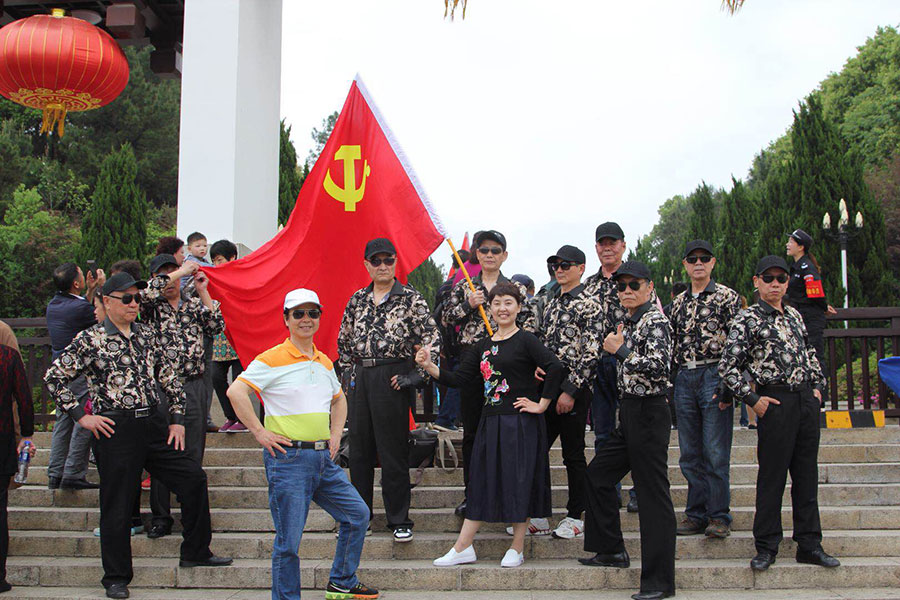 Un grupo de hombres chinos cuya edad promedio es de 68 a?os participan de un curso de modelado de ropa en un colegio para el adulto mayor en Wuhan, provincia de Hubei. [Foto: proporcionada]