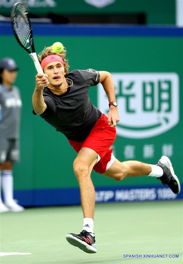 SHANGHAI, octubre 13, 2018 (Xinhua) -- Alexander Zverev, de Alemania, devuelve la pelota a Novak Djokovic, de Serbia, durante el partido individual varonil de semifinal del torneo de tenis Maestros de Shanghai de la Asociación de Tenistas Profesionales (ATP), en Shanghai, en el este de China, el 13 de octubre de 2018. Zverev perdió el encuentro. (Xinhua/Fan Jun)