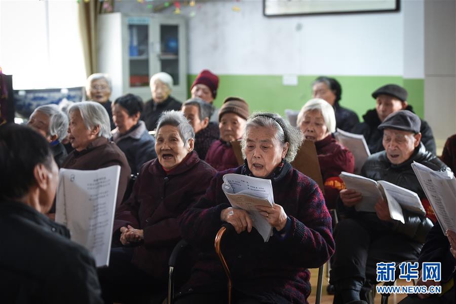 Los ancianos practican en coro en una residencia de ancianos en el distrito Wuchang de Wuhan (Foto del 22 de enero de 2015). Agencia de noticias Xinhua, reportero Xiao Yijiu.