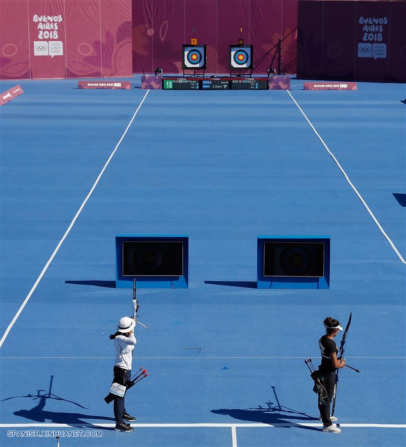 BUENOS AIRES, octubre 16, 2018 (Xinhua) -- Son Yeryeong (i), de República de Corea, compite con Valentina Vázquez Cadena (d), de México, por la medalla de bronce del evento individual femenil de tiro con arco recurvo de los Juegos Olímpicos de la Juventud Buenos Aires 2018, en Buenos Aires, Argentina, el 16 de octubre de 2018. (Xinhua/Wang Lili)