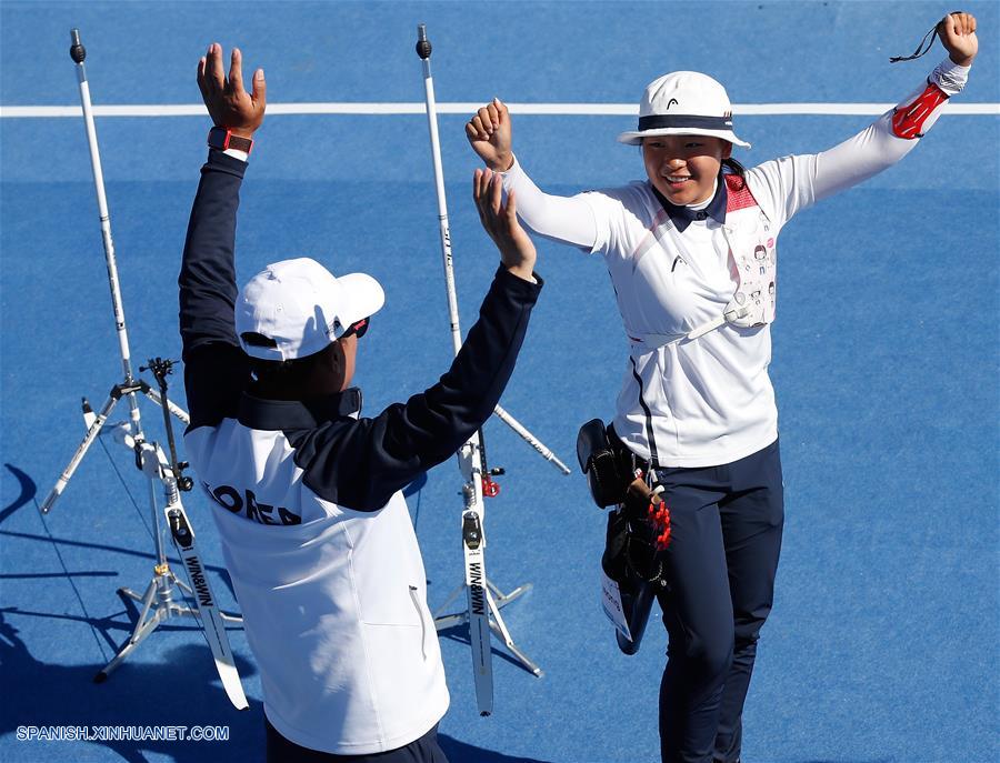 BUENOS AIRES, octubre 16, 2018 (Xinhua) -- Son Yeryeong (d), de República de Corea, festeja después de ganar la competencia por la medalla de bronce del evento individual femenil de tiro con arco recurvo de los Juegos Olímpicos de la Juventud Buenos Aires 2018, ante Valentina Vázquez Cadena, de México, en Buenos Aires, Argentina, el 16 de octubre de 2018. (Xinhua/Wang Lili)