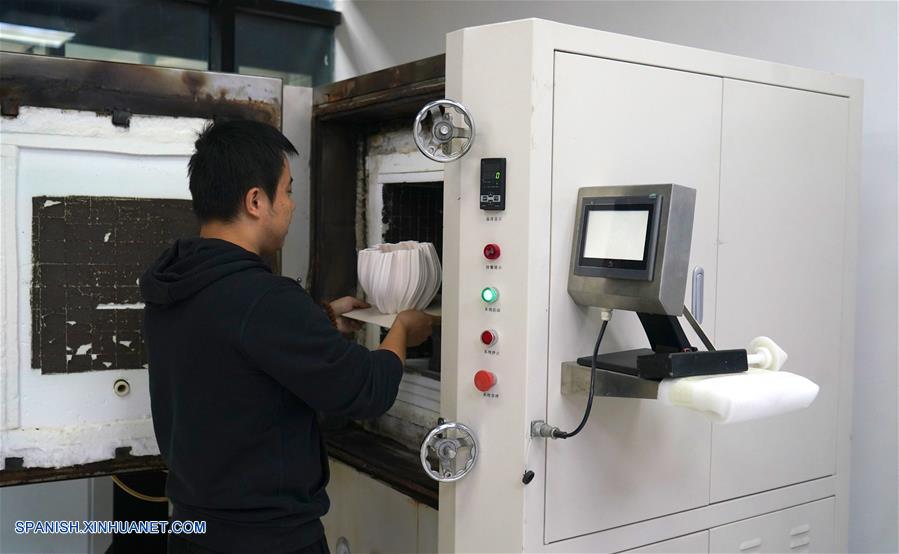 JIANGXI, octubre 16, 2018 (Xinhua) -- Un empleado coloca una figura de cerámica elaborada con una impresora en 3D casi terminada, en un horno eléctrico en un centro de impresión en 3D, en el área de creación cultural de Taoxichuan, en la ciudad de Jingdezhen, en la provincia de Jiangxi, en el este de China, el 16 de octubre de 2018. La tecnología de impresión en 3D ha facilitado la creación de figuras de cerámica, reduciendo el proceso de 72 pasos a tres, y el tiempo de medio mes a tres horas. Jingdezhen es conocido como la capital de la porcelana de China, con una historia de 1,000 a?os de elaboración de cerámica de calidad. (Xinhua/Hu Chenhuan)