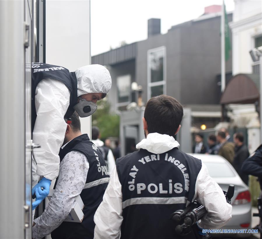 ESTAMBUL, octubre 17, 2018 (Xinhua) -- Policías turcos se preparan para buscar en la residencia del cónsul general de Arabia Saudí, en Estambul, Turquía, el 17 de octubre de 2018. Un equipo turco entró el miércoles en la residencia del cónsul general de Arabia Saudí en Estambul para buscar mayor evidencia sobre la desaparición del periodista saudí Jamal Khashoggi. (Xinhua/He Canling)