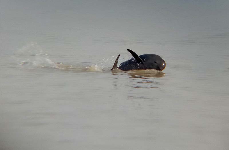 Una marsopa sin aletas fotografiada por un miembro del escuadrón en el lago Poyang. [Foto / XINHUA]