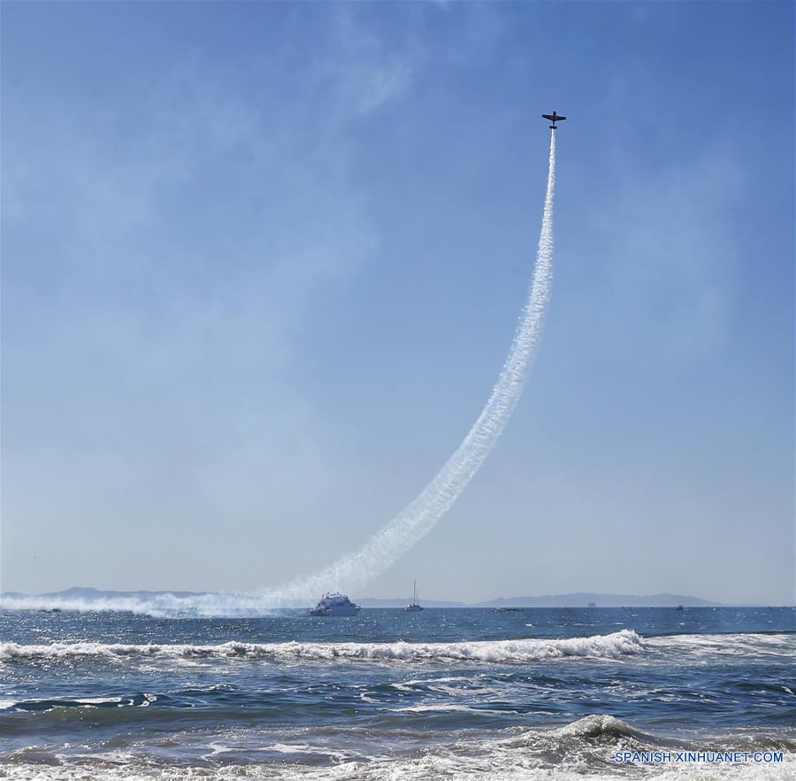 Imagen del 19 de octubre de 2018 de una vista del Great Pacific Airshow, en la ciudad de Huntington Beach, condado de Orange, en el estado de California, Estados Unidos. (Xinhua/Li Ying)