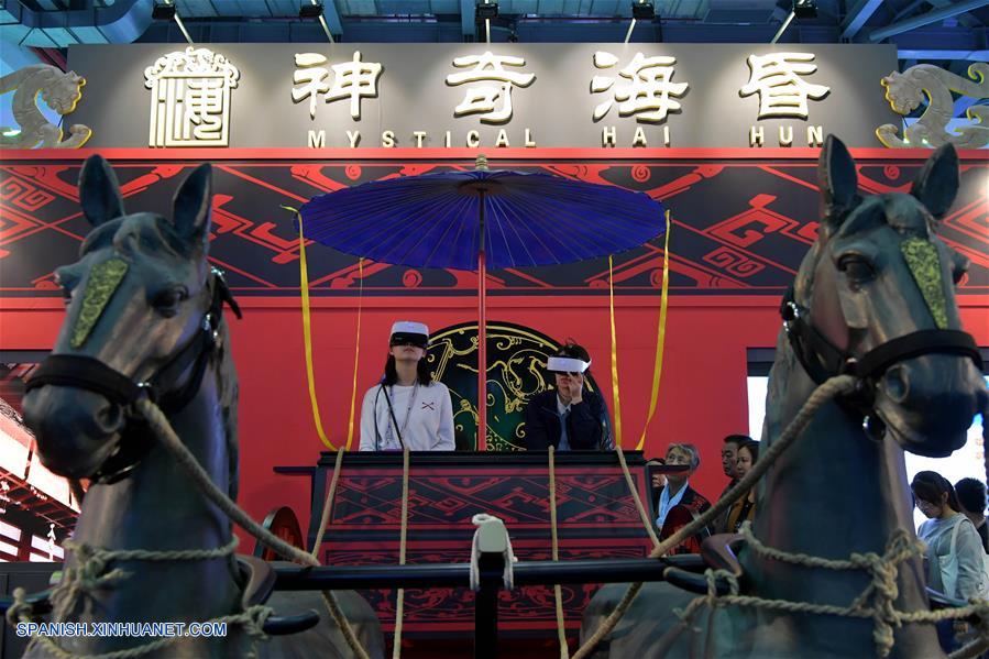 JIANGXI, octubre 19, 2018 (Xinhua) -- Visitantes usan dispositivos de Realidad Virtual (RV) para aprender sobre arqueología durante la Conferencia Mundial de la Industria de RV 2018, en Nanchang, provincia de Jiangxi, en el este de China, el 19 de octubre de 2018. La Conferencia Mundial de la Industria de Realidad Virtual (RV) 2018 se inauguró el viernes en la ciudad china de Nanchang, capital de la provincia oriental de Jiangxi, en la que será posible conocer los últimos avances de esta técnica en el mundo. El evento de tres días contará con una exposición sobre RV y foros centrados en ésta, en la inteligencia artificial y en la tecnología 5G. (Xinhua/Peng Zhaozhi)