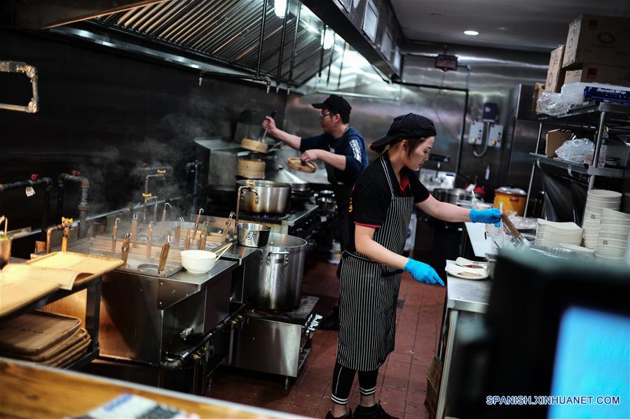 NUEVA YORK, octubre 23, 2018 (Xinhua) -- Imagen del 21 de octubre de 2018 de empleados preparando alimentos en el restaurante Shaxian Snacks, en Brooklyn, Nueva York, Estados Unidos. La cadena de restaurantes chinos "Shaxian County cuisine" ha abierto su primer restaurante en Estados Unidos. Ubicado en el número 818, en la calle 60 en Brooklyn, el restaurante que abrió el lunes, le ofrece a los comensales de ultramar botanas chinas tradicionales, incluyendo tallarines en salsa de cacahuate y wontons de puerco. (Xinhua/Li Muzi)