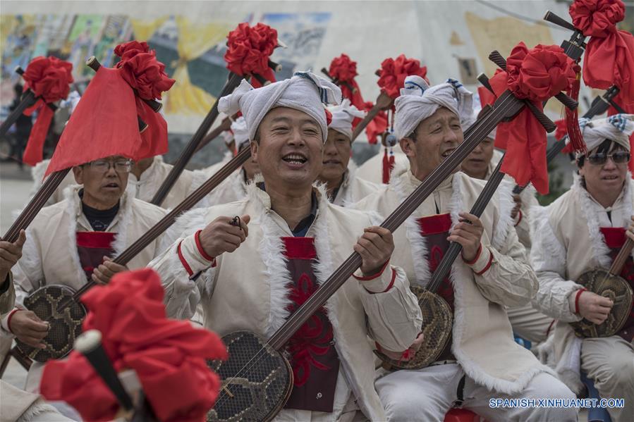SHAANXI, octubre 23, 2018 (Xinhua) -- Imagen del 19 de octubre de 2018 de artistas de música folclórica realizando una interpretación para los estudiantes, en el distrito de Ansai de la ciudad de Yan'an, provincia de Shaanxi, en el noroeste de China. En los últimos a?os, las escuelas de Ansai trajeron las artes populares a las clases para popularizar la cultura local. (Xinhua/Tao Ming)