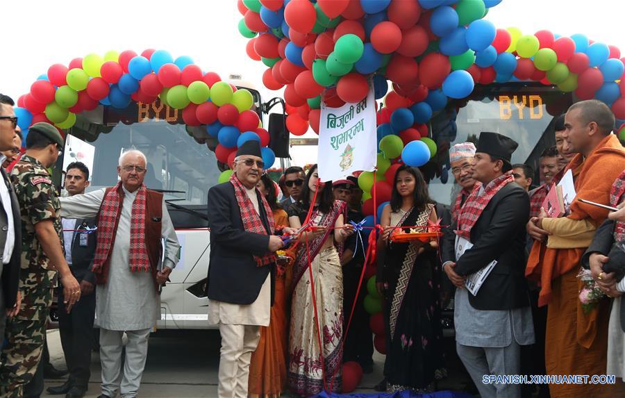 En una ceremonia especial organizada hoy en Lalitpur, el primer ministro nepalés, KP Sharma Oli, inauguró los autobuses que funcionan con baterías, y que fueron desarrollados por la compa?ía china BYD.
